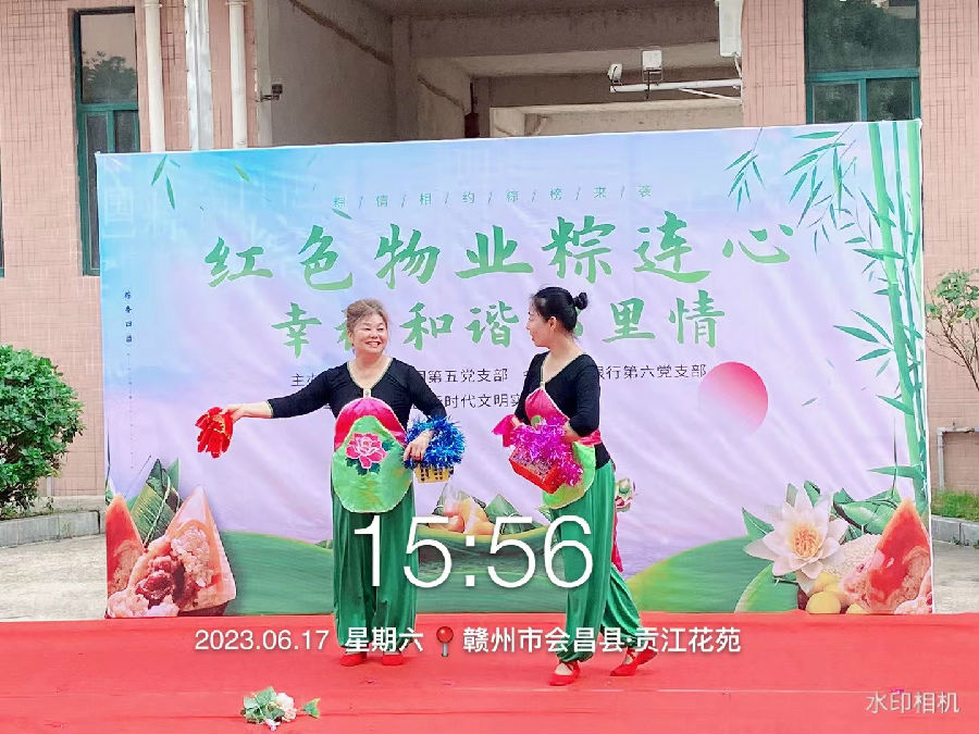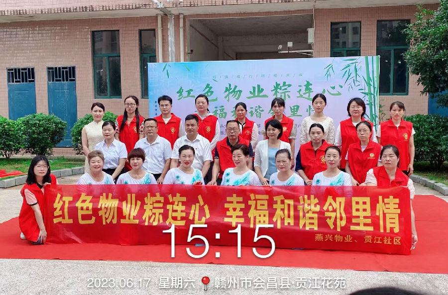 貢江花苑小區聯合貢江社區開展“紅色物業粽連心 幸福和諧鄰里情”迎端午主題活動。活動準備了精彩的文藝演出、黨的二十大知識問答及包粽子活動,現場氛圍喜慶詳和,居民們臉上喜笑顏開。