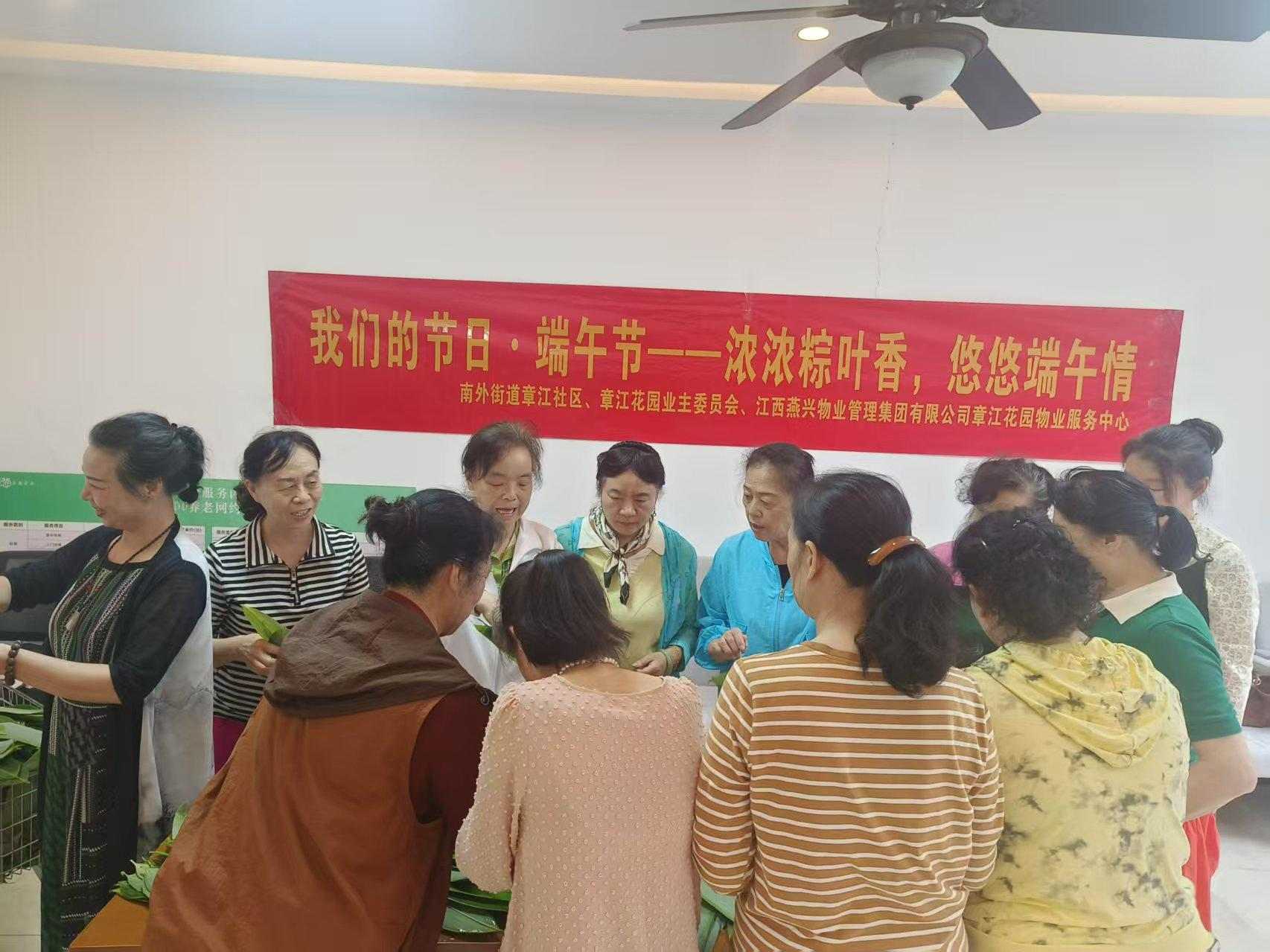 章江花園小區聯合南外街道章江社區、章江花園業主委員會開展“濃濃粽葉香  悠悠端午情”我們的節日端午節主題活動。活動現場,經驗豐富的業主們手法嫻熟,卷粽葉、填糯米、封口扎捆一氣呵成;新手們也熱情高漲,在“老師”的指導下,認真學習包粽技巧。大家圍坐在一起,有說有笑,互相交流經驗,不一會兒,形態各異的粽子擺滿了桌面。