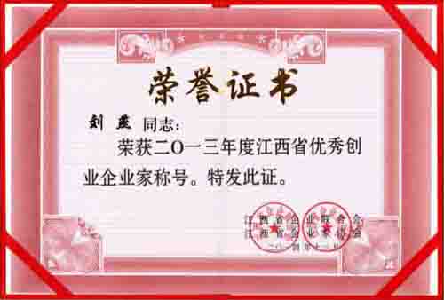 江西省優秀創業企業家稱號