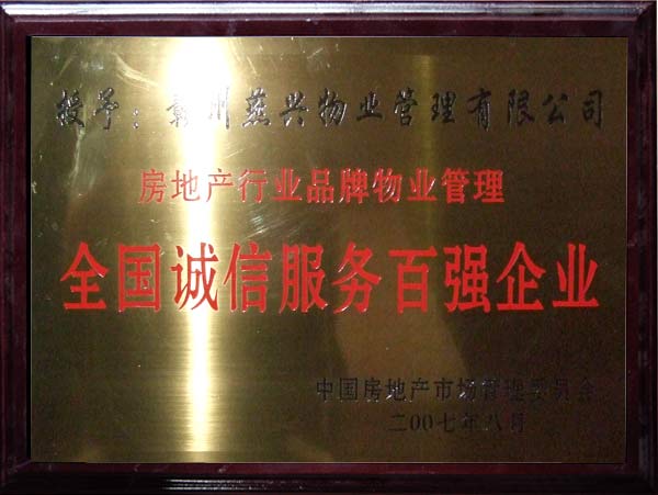 房地產行業(yè)品牌物業(yè)管理全國誠信服務百強企業(yè)