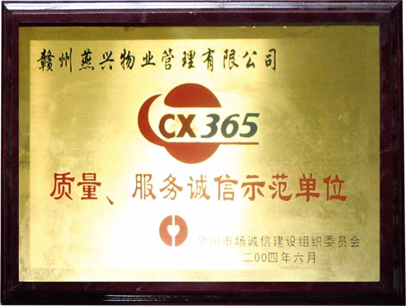 CX365質量、服務誠信示范單位