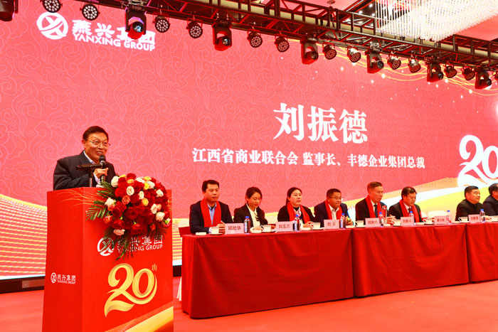 大會最后,江西省商業聯合會監事長、豐德企業集團總裁劉振德作最后講話,他首先對慶典大會的成功舉辦表示執烈的祝賀!對受表彰的"燕興功臣"與燕興工匠",以及被表彰2023年度優秀分公司、先進集體與先進個人表示執烈的祝賀!希望受表彰的先進集體和先進個人珍惜榮譽、戒驕戒燥、再創輝煌。