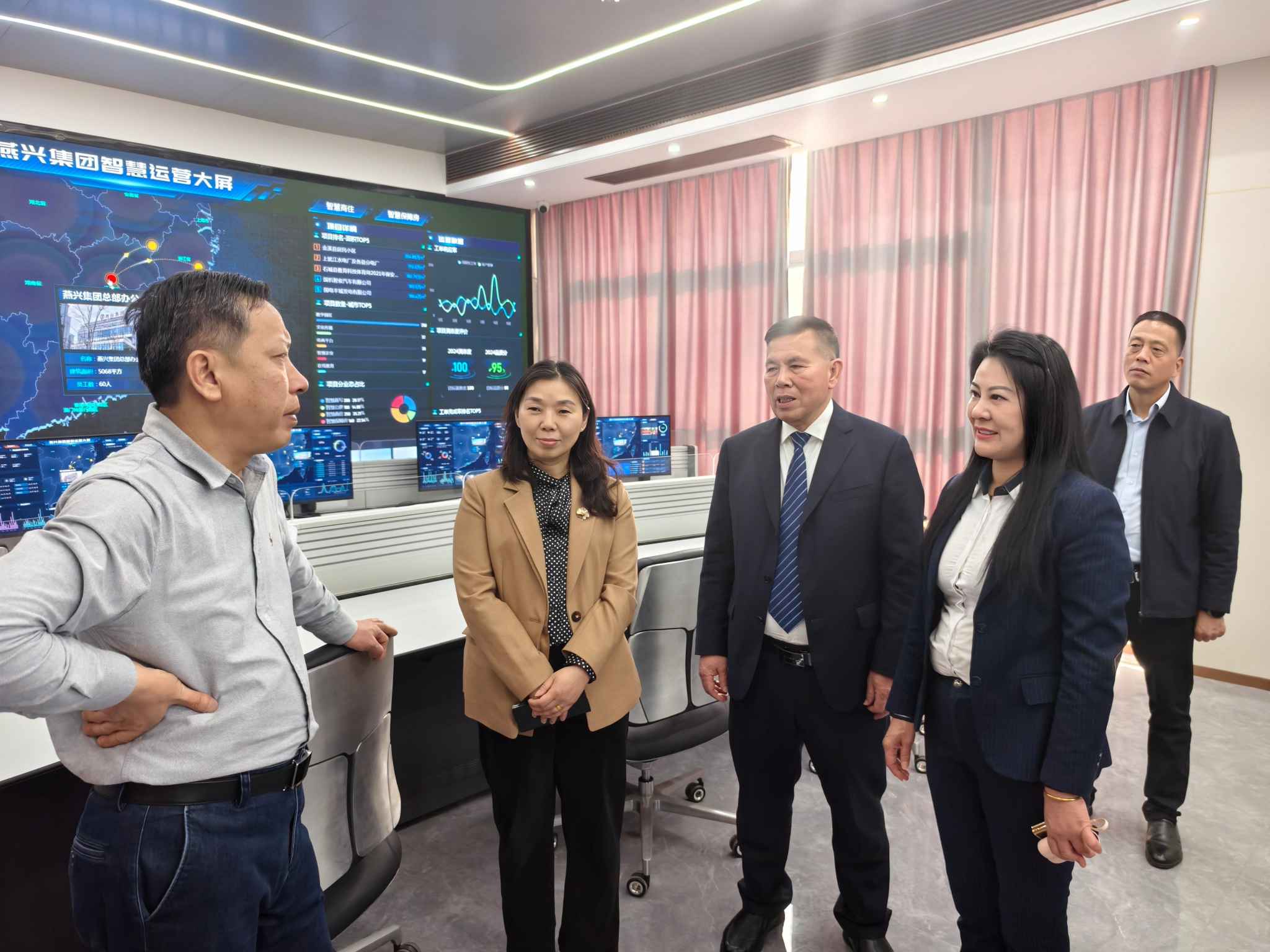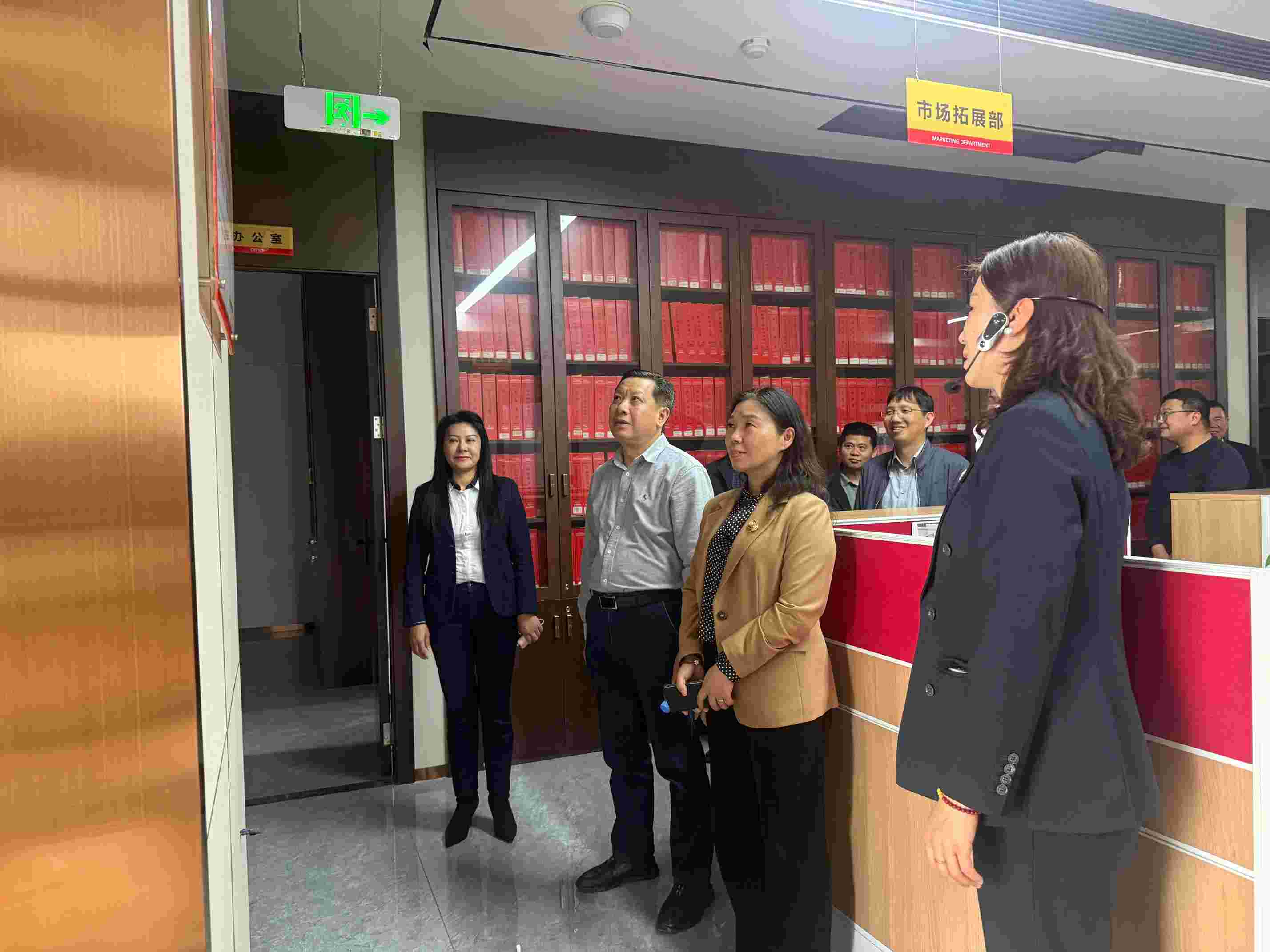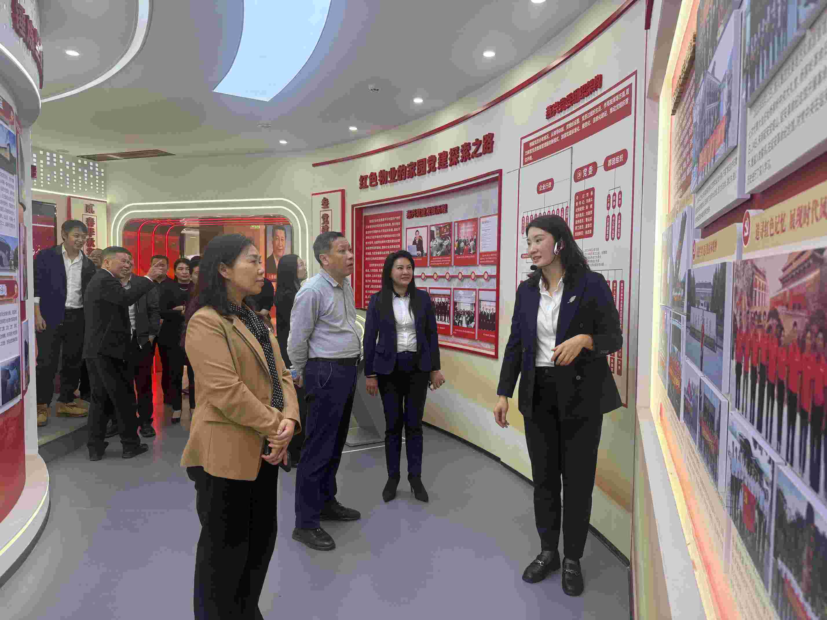 萬玲副局長一行首先參觀了燕興集團大樓的辦公區域與企業文化展示區,詳細了解公司20多年來的發展歷程、業務布局以及服務理念。在參觀過程中,萬玲副局長對燕興物業在黨建引領下取得的成績給予高度評價,特別指出公司在長期發展中,黨建工作與企業運營緊密結合,為行業樹立了良好的典范。