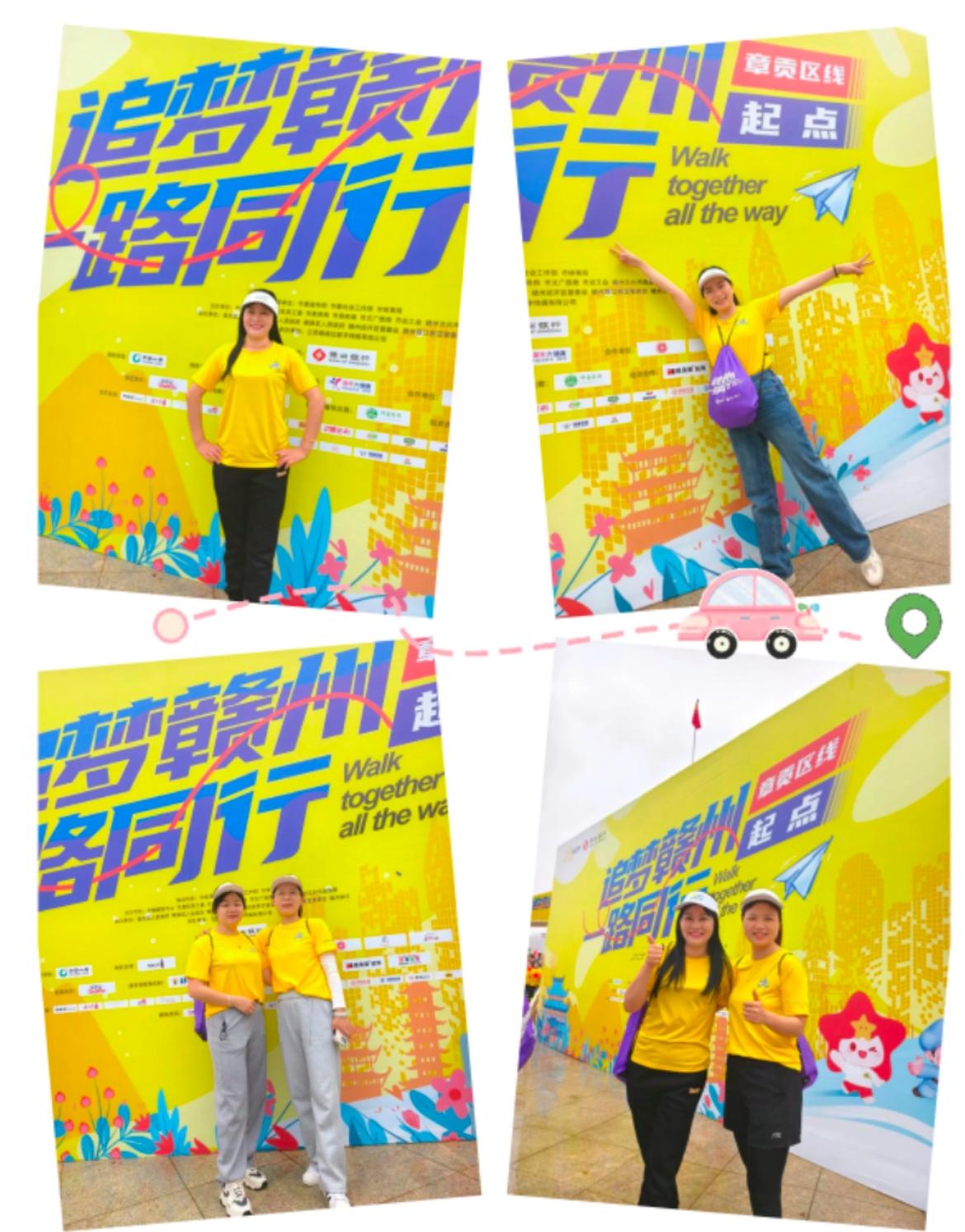一路上,員工們相互鼓勵、相互支持。在章貢區(qū)線路,大家沿著章江南岸健步道前行,欣賞著章江水面倒映的兩岸綠柳,感受著微風(fēng)拂面的愜意;行至軍門樓廣場,在四賢坊的飛檐斗拱下,大家駐足感受宋城遺韻;在福壽溝博物館內(nèi),千年排水智慧讓大家驚嘆不已;來到贛坊1969文創(chuàng)園,工業(yè)風(fēng)墻繪又激發(fā)了大家的拍照熱情。