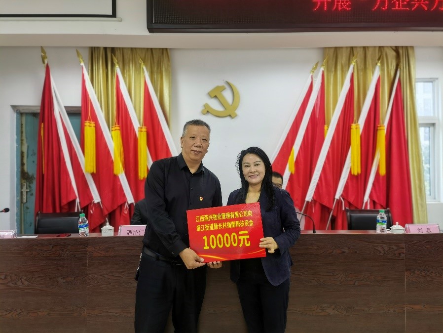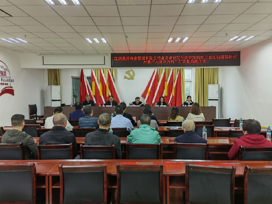 11月10日上午,燕興物業走進章貢區行政審批局掛點章江街道臘長村開展“萬企興萬村”捐贈活動。章江街道黨工委副書記、政法委員顏龍華,章貢區行政審批局政務服務中心主任郭懷仁,臘長村村書記曾廣琦,公司黨委書記、董事長劉燕,常務副總經理、婦聯主席徐桂香出席活動。